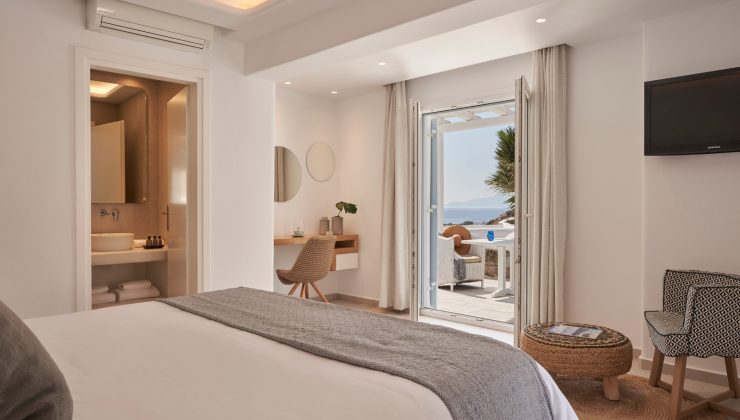 Paradise View has charming rooms appointed with care and attention to small details, within eight price categories that all enjoy a sense of privacy and easy access to the hotel facilities. The interiors are predominantly white in the tradition of island homes, flooded with light and views through double-glazed windows that ensure silence when required and that open onto small balconies or larger verandas.